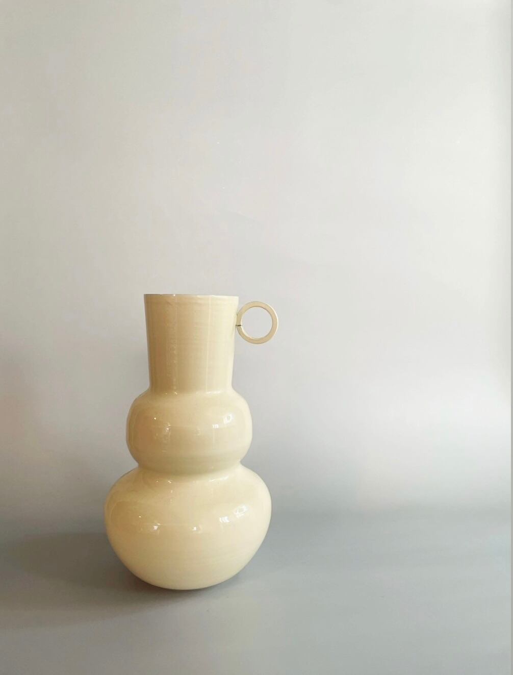 ユニークなフォルムとクリーミーなカラーが目を惹くフラワーベース。