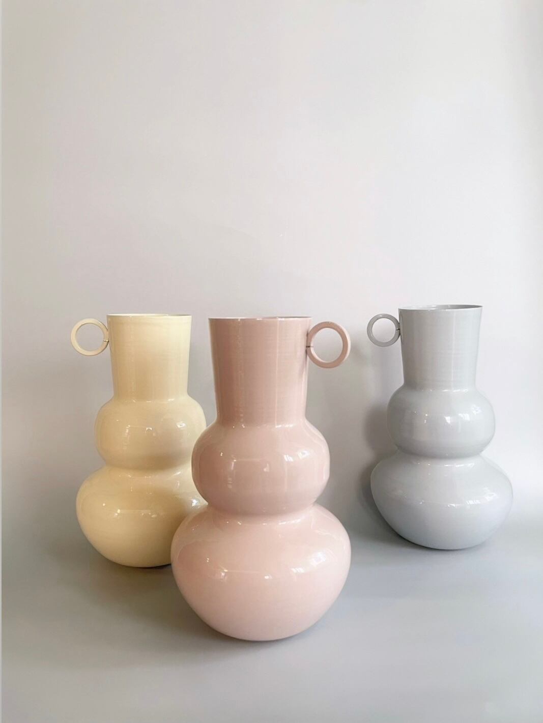 ユニークなフォルムとクリーミーなカラーが目を惹くフラワーベース。